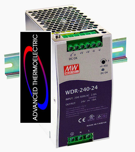 Having a state-of-the-art circuit design the WDR-240 series are highly efficient (91%) and can provide 240W continuously in ambient temperatures up to 50 °C (122 °F), or operate up to 70 °C (158 °F) with some power derating. The MDR series can be operated in areas normally frozen with a low temperature power-on ability at minus 30 °C (-22 °F). The slim 63mm design saves precious space on the rail.
